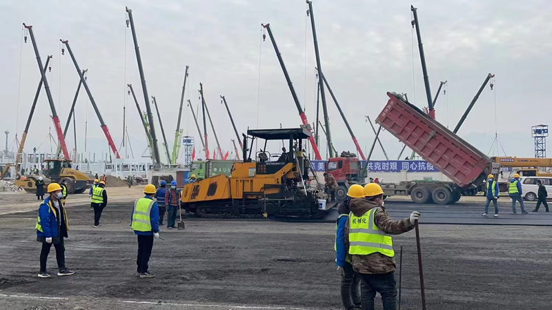 2021年12月29日上午,我公司接到陕建华山路桥的紧急通知,参建西安市高新区方舱医院项目,在疫情蔓延形势复杂严峻的情况下,防控工作刻不容缓,我公司立即将参建放舱医院作为一项特殊时期重要、紧急、光荣的任务,高度重视、迅速响应。各部门职工纷纷主动请缨,积极投身方仓医院建设。由于疫情影响,面对原材料短缺、劳务人员短缺,我们克服了重重困难,迅速集结了30余名管理人员组成施工突击队,第一时间奔赴现场。当天下午4点,组织包括两台ABG8620沥青摊铺机、同步碎石封层车、双钢轮压路机、胶轮压路机、及小型前钢后胶压路机等机械设备已进入工地现场。同时前场技术员、施工员、安全员、后勤员、运输队均已进入各自工作岗位。12月29日起,连夜生产8000余吨二灰碎石混合料,道路面层采用沥青混合料进行铺设,生产成品沥青混合料5000余吨,经过全体人员不分昼夜,紧张有序的连续施工,高新区放舱医院项目顺利完成。