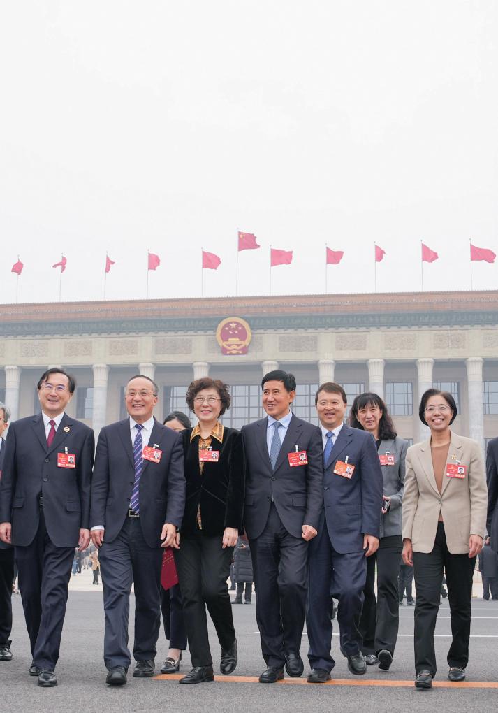 迎春吐蕊、玉兰含苞。3月的首都北京,春意萌动。 11日下午,近3000名全国人大代表齐聚人民大会堂,出席十四届全国人大三次会议闭幕会。 3月11日,十四届全国人大三次会议在北京人民大会堂举行闭幕会。新华社记者 庞兴雷 摄 全国人大代表何光华心潮澎湃。几天前,在人民大会堂东大厅,她现场聆听了习近平总书记在参加江苏代表团审议时的重要讲话。 “今年是‘十四五’规划收官之年,只有勇挑大梁、迎难而上,才能高质量完成目标任务,为实现‘十五五’良好开局打牢基础。”何光华说,作为一名产业技术人员,要扎实落实好总书记要求,抓实科技创新、产业创新,让更多科技成果走出实验室、走上生产线、走向大市场。 3月11日,十四届全国人大三次会议在北京人民大会堂举行闭幕会。新华社记者 谢环驰 摄 年近80岁的山西省晋中市昔阳县大寨村党总支书记郭凤莲代表步履稳健。 “履职30多年,我越来越觉得,我们是架在党和政府同人民群众间的一座桥梁。”郭凤莲说,从乡亲们关心的垃圾处理到特色产业发展,她围绕农村工作提出建议逾百条,不少得到了采纳。 从因地制宜发展新质生产力到优化营商环境,从加大优质教育资源供给到抢抓文旅发展新机遇……连日来,代表们围绕政府工作报告等认真审议审查、积极献策。在驻地、在会场,大家谈改革、话民生、议发展,充分交流、热烈讨论。 截至3月8日12时,大会秘书处共收到代表提出的议案269件。此外,大会秘书处还收到代表建议8000余件。 “既有真诚、务实的沟通交流,也有高效、及时的回应和落实。”今年全国两会上,广东省人民医院(广东省医学科学院)党委书记周琳代表在参加代表团审议时,提出了进一步让优质医疗资源在基层“触手可及”的建议,第二天就得到了国家卫生健康委工作人员的回复。 闭幕会前,人民大会堂中央大厅北侧,第三场“代表通道”集体采访活动正在进行。 3月11日,第十四届全国人民代表大会第三次会议第三场“代表通道”集中采访活动在北京人民大会堂举行。这是接受采访的全国人大代表入场。新华社记者 胥冰洁 摄 谭新萍代表分享了地里种的“土疙瘩”变成村民增收“金疙瘩”的喜悦,王秀英代表讲述了沙地上种出“吨粮田”的圆梦故事,卓娅·巴合提代表展现让文物“传下去”“活起来”的责任担当…… 大会期间,总计18位来自各行各业、全国各地的代表走上“代表通道”,分享追梦故事、畅谈履职心得,生动诠释中国式民主的生机与活力。 “开放、民主、包容、自信,这是透过‘代表通道’这扇窗,我对中国两会最直观的印象。”澳大利亚澳华电视传媒董事长任传功说,一个又一个鲜活、真实的故事,为广大发展中国家拓展现代化道路提供了有益启示。 3月11日,第十四届全国人民代表大会第三次会议第三场“代表通道”集中采访活动在北京人民大会堂举行。新华社记者 胥冰洁 摄 万人大礼堂内,气氛庄重而热烈。主席台上方,国徽高悬正中,在两侧红旗的映衬下格外引人注目。 铿锵的进行曲,如潮的掌声,人民的盛会。习近平总书记步入会场,现场气氛愈加热烈。 15时许,闭幕会开始。 各项决议和决定草案一一提请表决。 代表们一次次按下电子表决器。人民的拥护在汇聚,国家的意志在形成,党心民心同向同行。 “团结就是力量,奋斗开创未来。”通过电视直播全程观看闭幕会,国家超级计算无锡中心主任助理甘霖感触颇深:“我们要牢牢把握住国家发展和时代进步带来的大好机遇,在专业领域更加精益求精,努力解决技术难题,让科技创新与产业需求‘双向奔赴’。” 15时30分许,大会在雄壮的国歌声中胜利闭幕。 代表们满怀信心、力量与豪情走出会场,即将奔赴各自的工作岗位,用实际行动宣传贯彻落实大会精神。 3月11日,十四届全国人大三次会议在北京人民大会堂举行闭幕会。这是闭幕会后,代表们走出人民大会堂。新华社记者 金立旺 摄 这信心,来自坚持党的全面领导不动摇—— “党的领导直接关系中国式现代化的根本方向、前途命运、最终成败。”内蒙古自治区卓资县十八台镇黄旗滩村党支部书记、村委会主任薛志龙代表说,将继续以高质量党建为引领,通过设立党员先锋岗等举措,充分激发党员干部的干劲活力,团结带领乡亲们把日子越过越红火。 这力量,植根于以人民为中心的发展思想—— “从教育、就业,到医疗、社会保障,我们要贯彻好全国两会精神,落实关于增进民生福祉的一系列具体部署。”黑龙江省鸡西市市长孙成坤代表说,鸡西将以启动义务教育优质资源共建共享工程、实施就业精准支持计划、纵深推进“三医”联动改革等为重点,不断升级公共服务、办好民生实事、兜牢民生底线。 这豪情,蕴含着砥砺奋进、迎难而上的精气神—— “我深深地感受到,我们正走在民族复兴的伟大征程上。”作为湖南代表团最年轻的代表,“95后”残奥会冠军文晓燕坚定地说:“我将继续扎根在田径赛场,不断突破自我,为祖国的蓬勃发展贡献自己的青春力量。” 3月11日,十四届全国人大三次会议在北京人民大会堂举行闭幕会。这是闭幕会后,代表们走出人民大会堂。新华社记者 才扬 摄 春光无限好,万物竞芳菲。 奋进的中国,扬帆再出发! 文字记者:孙少龙、任沁沁、齐琪、何磊静、哈丽娜、杨思琪、刘芳洲、白佳丽、董博婷、周颖 海报设计:卓越 统