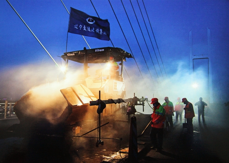 澳门银河娱乐官网沥青摊铺机双机并铺助力中朝鸭绿江界河公路大桥建设2014年6月