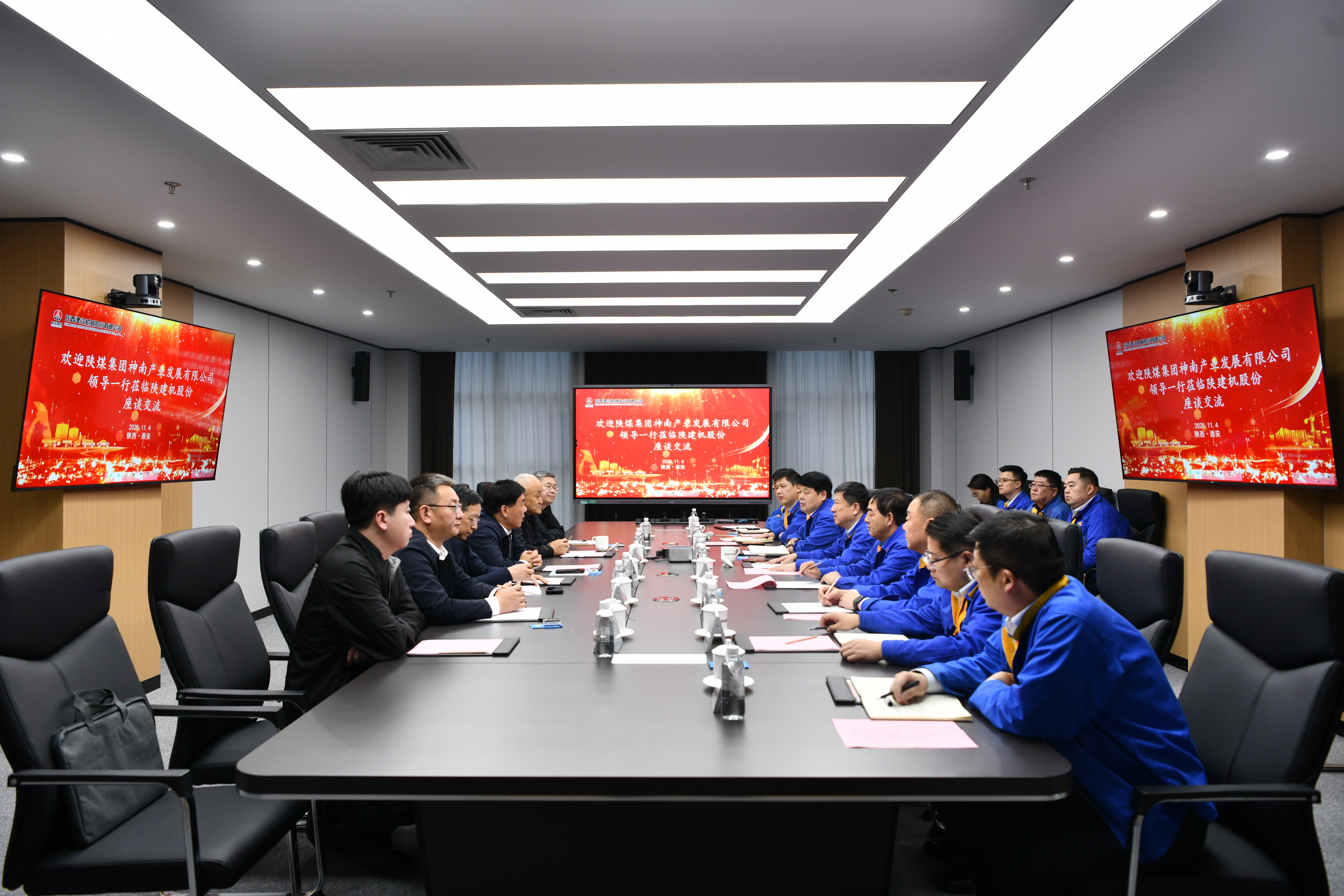 11月4日下午,神南产业公司党委书记、董事长吴文良一行到访澳门银河网上赌场,围绕落实陕煤集团“协同增效年”工作部署,就服务陕煤集团主业、优化产业结构、强化市场开拓、推进品牌文化建设、加强党建引领等展开深度交流。澳门银河网上赌场党委书记、董事长车万里,党委副书记黄爱民,党委副书记、董事、工会主席樊福锁等班子成员参加座谈。 座谈会上,车万里对吴文良一行的到访表示欢迎,向神南产业公司长期以来的支持与帮助致以诚挚谢意。他高度认可神南产业公司在煤矿设备服务领域的专业积淀,全面介绍澳门银河网上赌场及所属陕煤智控产业布局,技术...