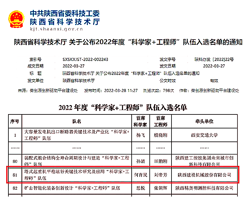 日前,陕西省科学技术厅公布了2022年度“科学家+工程师”队伍名单,澳门银河网上赌场与西安建筑科技大学组建的塔式起重机平稳运行关键技术研究及应用“科学家+工程师”队伍入选支持名单。 为加快秦创原创新驱动平台建设,促进产业链、创新链深度融合,省科技厅设立秦创原“科学家+工程师”队伍建设项目,从平台、人才、项目等方面给予支持,鼓励高校科学家与企业工程师“联姻”,形成相对固定合作模式和工作机制的科研创新团队,打造百个“科学家+工程师”队伍,为陕西企业产品研发提供技术支撑。近年来,澳门银河娱乐官网公司以陕西省高新...